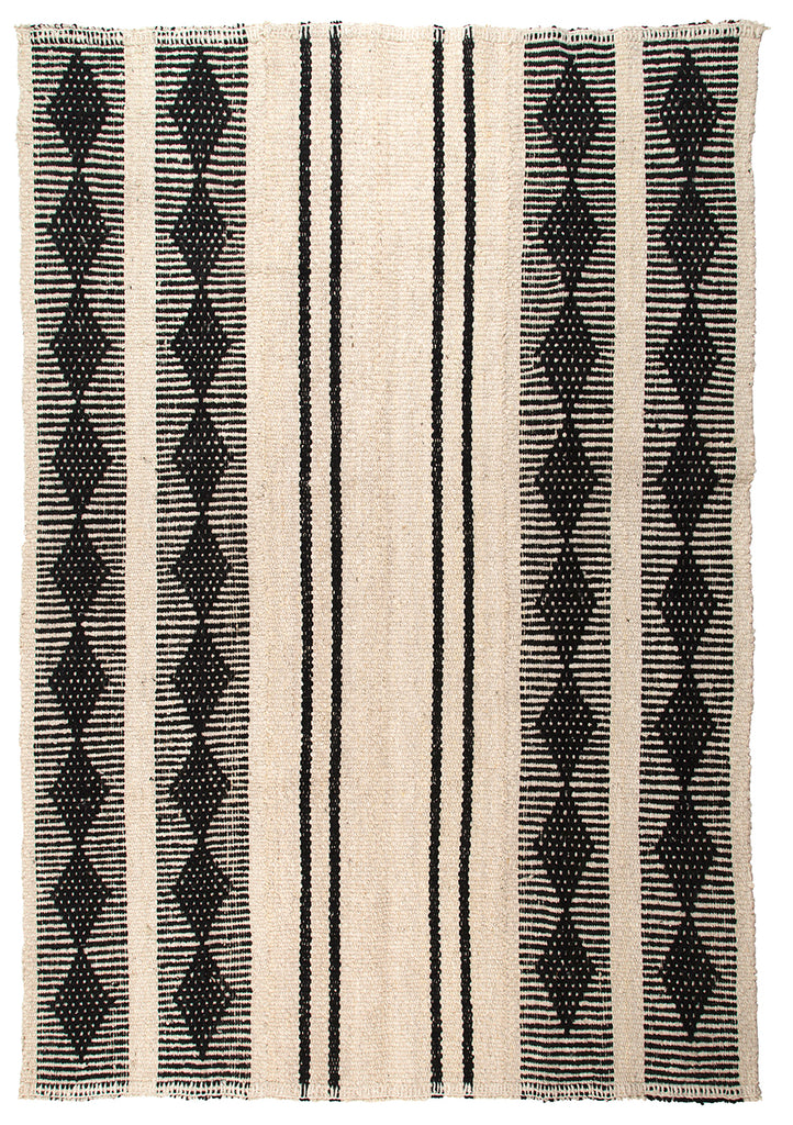 Our rugs are woven in traditional ways typical to Latin American rugs, where the looms used are generally the width of the arm span of the weaver. Depending on the width of the weaver's loom, the rug may have one or more discreet unions where the panels of the rug are joined, which are a beautiful element of their handmade nature.