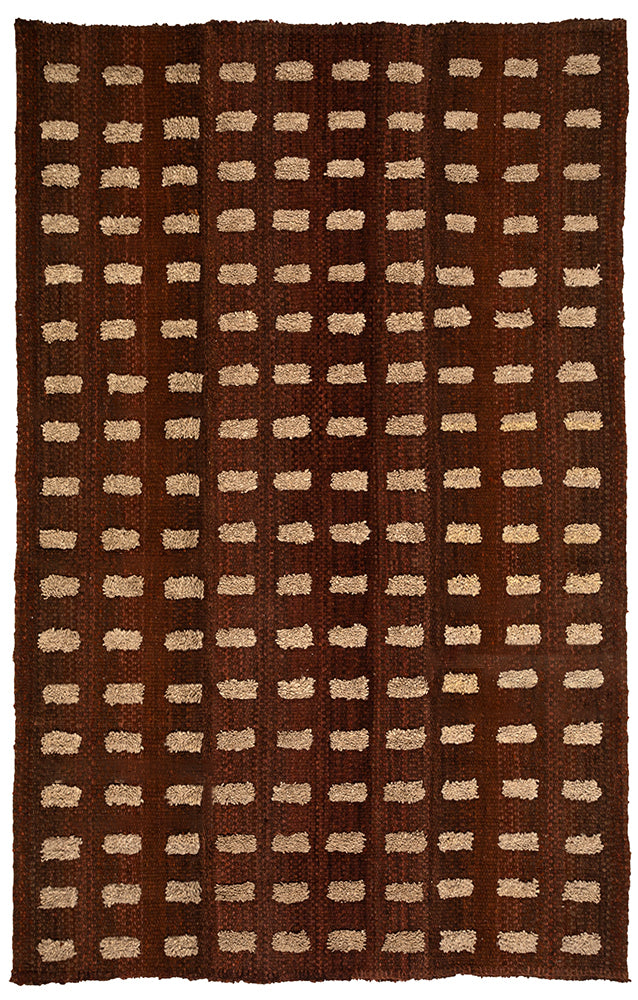 Our rugs are woven in traditional ways typical to Latin American rugs, where the looms used are generally the width of the arm span of the weaver. Depending on the width of the weaver's loom, the rug may have one or more discreet unions where the panels of the rug are joined, which are a beautiful element of their handmade nature.