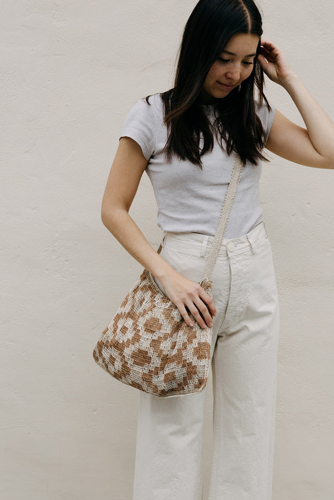 The Litoral Collection has travelled from isolated parts of Argentina known as Litoral zones, here members of the Wichí indigenous community hand-knit with fibres extracted from the chaguar, a native plant similar to aloe vera. Since time immemorial, they have used this technique to make bags for collecting fruit, fishing nets and traditional costumes. The durable, textured threads are coloured with natural dyes extracted from roots, seeds and fruits. Abstract designs are inspired by markings found on birds and snakes, and were traditionally used as talismans for spiritual protection.