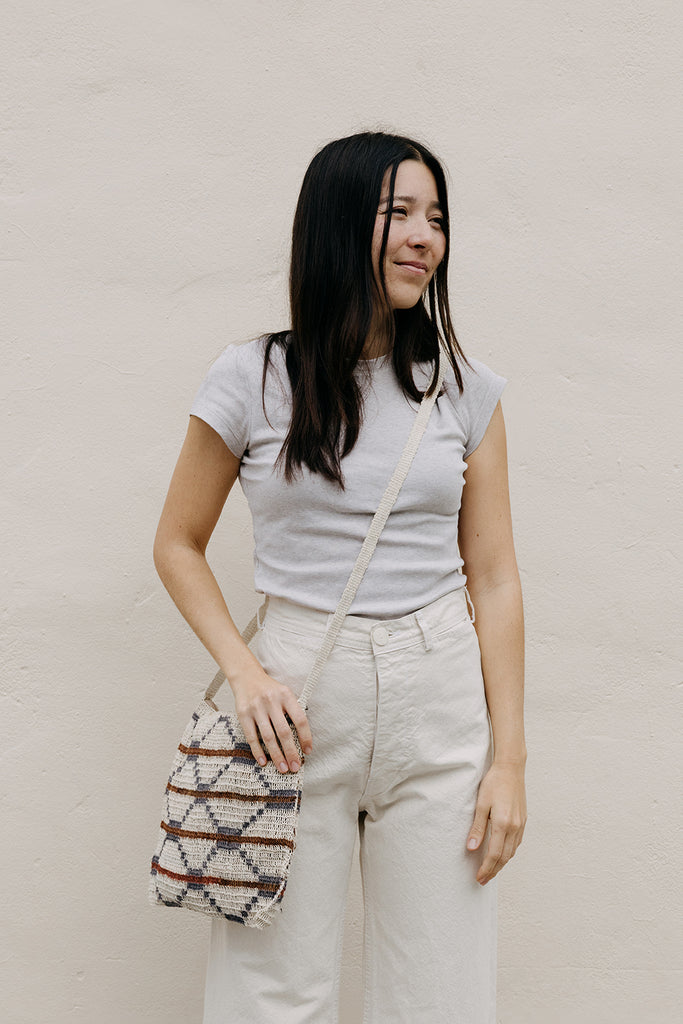 The Litoral Collection has travelled from isolated parts of Argentina known as Litoral zones, here members of the Wichí indigenous community hand-knit with fibres extracted from the chaguar, a native plant similar to aloe vera. Since time immemorial, they have used this technique to make bags for collecting fruit, fishing nets and traditional costumes. The durable, textured threads are coloured with natural dyes extracted from roots, seeds and fruits. Abstract designs are inspired by markings found on birds and snakes, and were traditionally used as talismans for spiritual protection.