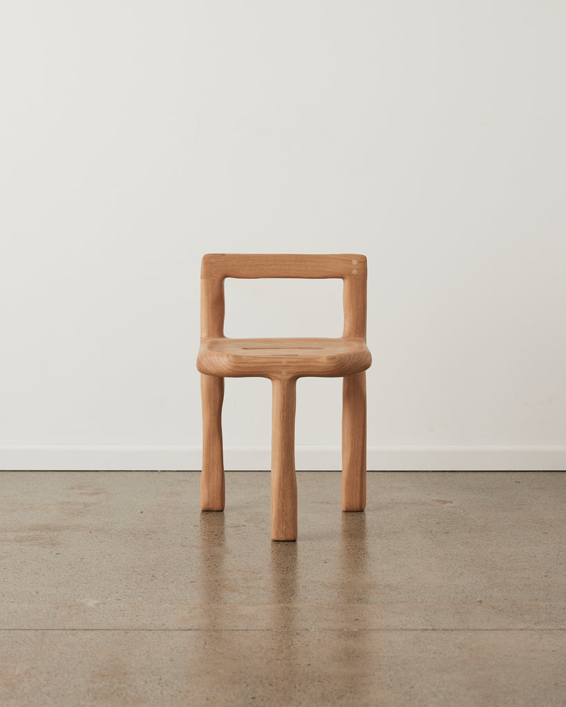 The Mambo chairs are a playful exploration of sculptural design handcrafted in Byron Bay by J.D Lee Furniture. Drawing inspiration from the MAMBO clothing brand, the chairs each have cheeky names like ‘the bum seat’ and ‘the tongue’. Their chunky aesthetic is paired with a refined, hand carved form. Each chairs shape is organic and will vary slightly with each recreation. The structural integrity of the chair is enforced with large mortice and tenon joinery, pinned in place with timber dowels.