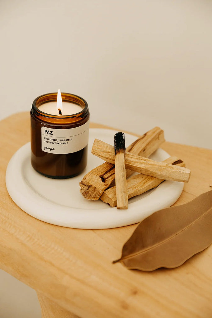We've teamed up with Posie to bring a sense of peace to your space. Our candle PAZ, meaning ‘PEACE’ in Spanish evokes our character through a scent that blends cleansing Eucalyptus with earthy Palo Santo, tracing a map between the native elements of Australia and Argentina.