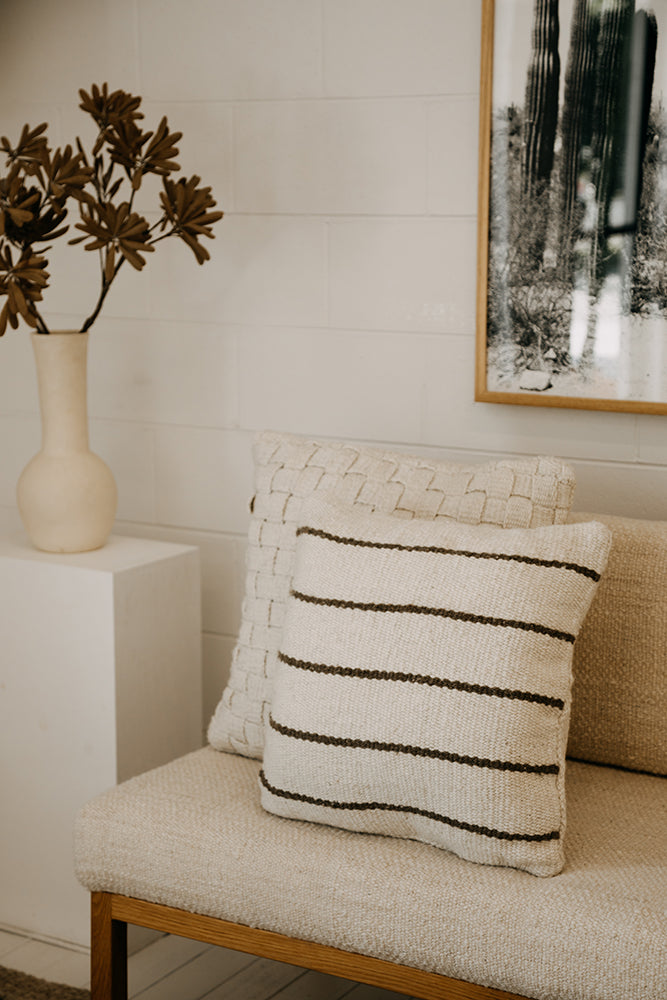 All Linear Pampa cushions are woven using high-quality, fine, natural fibres, and every step of the process is done by hand, making each piece unique. We only carry a small amount of in-stock cushions, our weavers produce them in small batches.