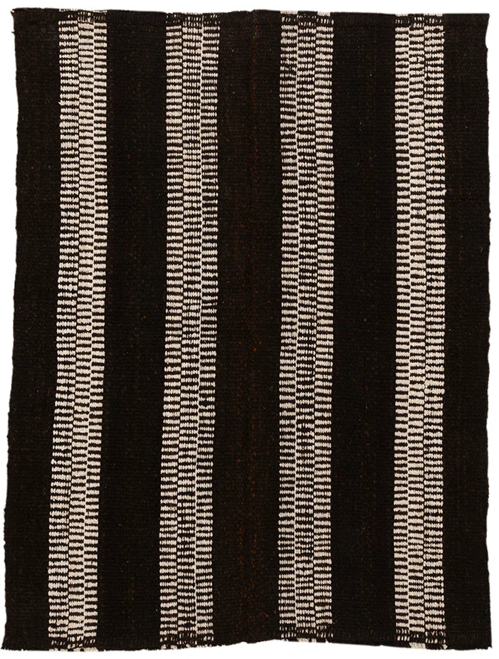The Carla Rug from The Linear Collection features a pattern of both vertical and horizontal black lines woven in a thick weave. Set against a natural base, this design creates depth and texture with its dynamic interplay of lines.