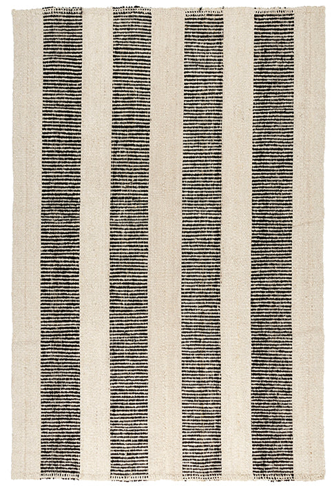 The Sierra Rug from The Linear Collection features a pattern of horizontal lines that create the illusion of larger, bold vertical lines. This clever design, set against a natural base, adds depth and a sophisticated touch to any space.