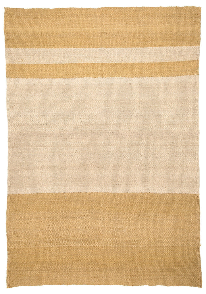 Our rugs are woven in traditional ways typical to Latin American rugs, where the looms used are generally the width of the arm span of the weaver. Depending on the width of the weaver's loom, the rug may have one or more discreet unions where the panels of the rug are joined, which are a beautiful element of their handmade nature.
