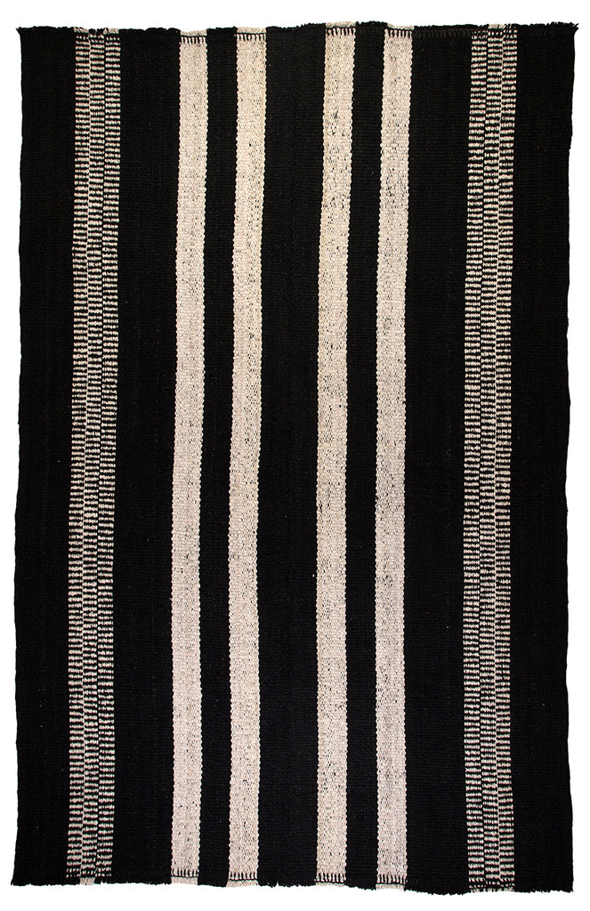 Our rugs are woven in traditional ways typical to Latin American rugs, where the looms used are generally the width of the arm span of the weaver. Depending on the width of the weaver's loom, the rug may have one or more discreet unions where the panels of the rug are joined, which are a beautiful element of their handmade nature.