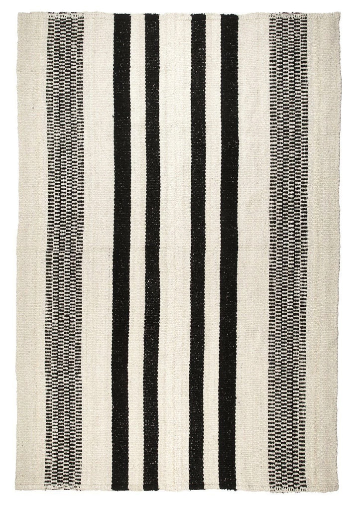 The Estefania Rug from The Linear Collection features a pattern with both vertical and horizontal lines woven in a thick weave. The design includes bold vertical lines interspersed with horizontal lines that create the effect of a broken, thicker line. Set against a natural base, this combination adds depth and texture, offering dynamic line interplay.