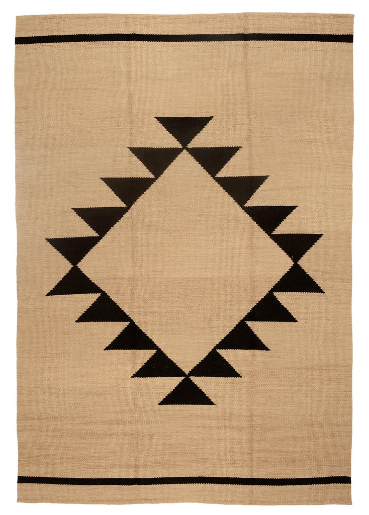 Our rugs are woven in traditional ways typical to Latin American rugs, where the looms used are generally the width of the arm span of the weaver. Depending on the width of the weaver's loom, the rug may have one or more discreet unions where the panels of the rug are joined, which are a beautiful element of their handmade nature.