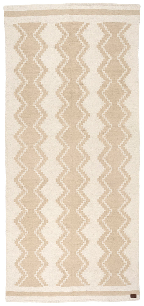 Our rugs are woven in traditional ways typical to Latin American rugs, where the looms used are generally the width of the arm span of the weaver. Depending on the width of the weaver's loom, the rug may have one or more discreet unions where the panels of the rug are joined, which are a beautiful element of their handmade nature.