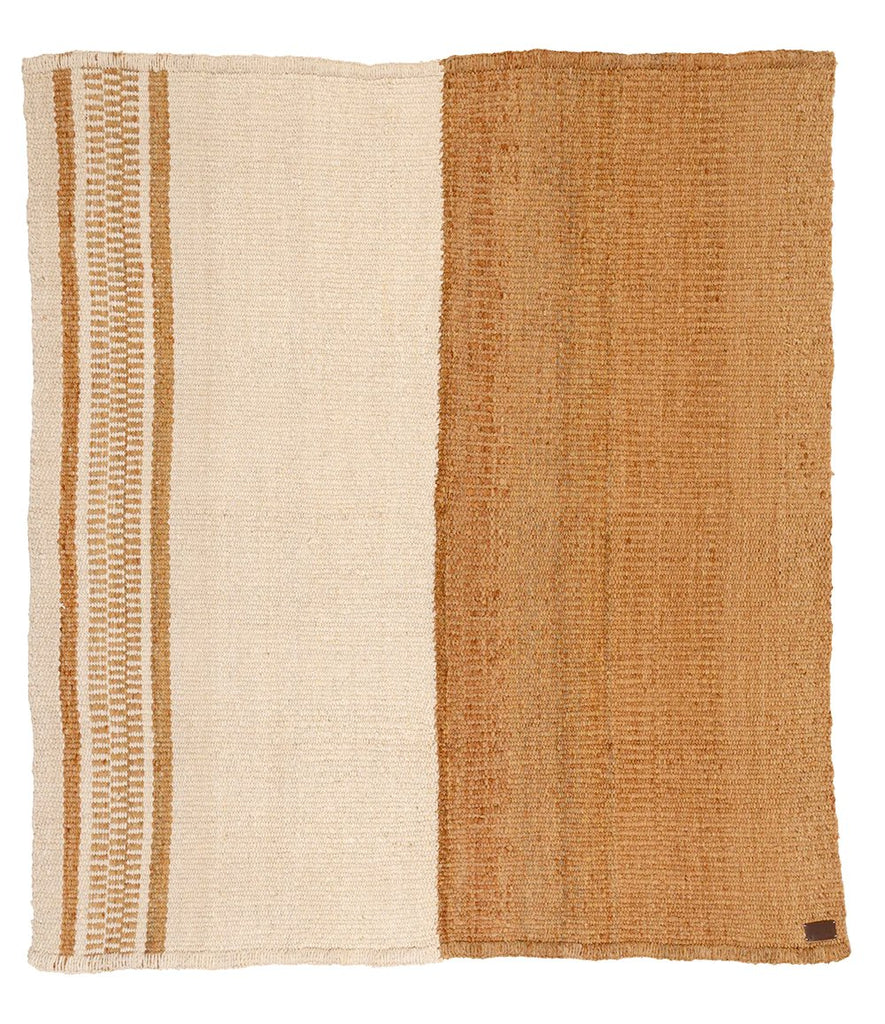 Our rugs are woven in traditional ways typical to Latin American rugs, where the looms used are generally the width of the arm span of the weaver. Depending on the width of the weaver's loom, the rug may have one or more discreet unions where the panels of the rug are joined, which are a beautiful element of their handmade nature.