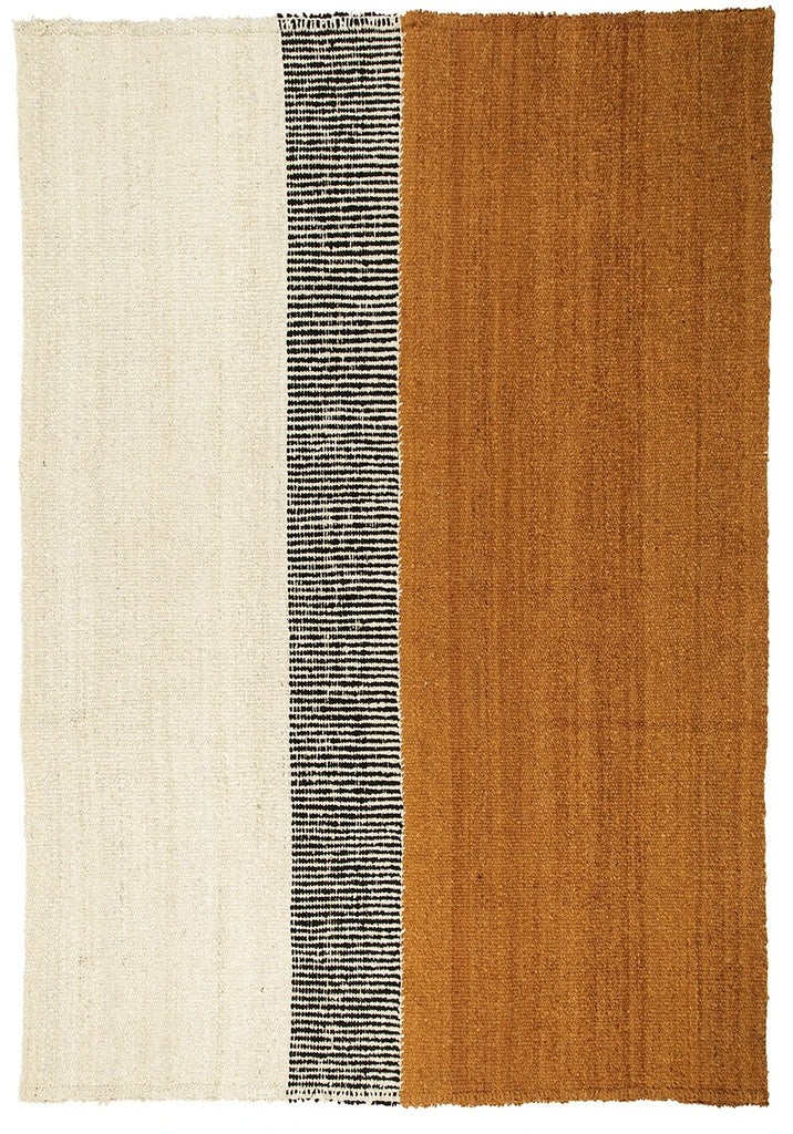 Our rugs are woven in traditional ways typical to Latin American rugs, where the looms used are generally the width of the arm span of the weaver. Depending on the width of the weaver's loom, the rug may have one or more discreet unions where the panels of the rug are joined, which are a beautiful element of their handmade nature.